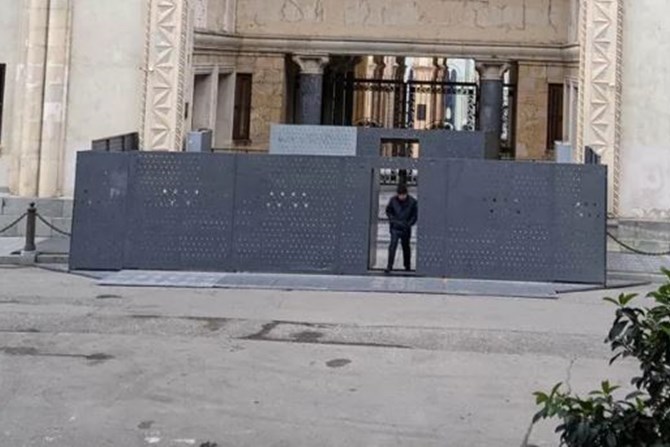 პარლამენტის შენობის წინ კვლავ განათავსეს რკინის ჯებირები, რომელიც გუშინ აქციის მონაწილეებმა წააქციეს.