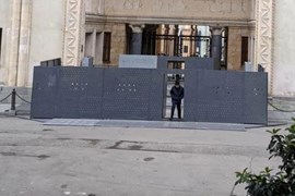 პარლამენტის შენობასთან რკინის ჯებირები კვლავ განათავსეს