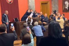 იურიდიულ საკითხთა კომიტეტის სხდომაზე, სადაც ე.წ. აგენტების შესახებ კანონპროექტის განხილვა მიმდინა...